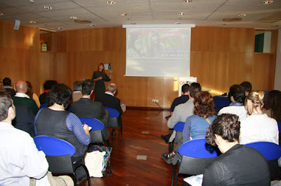 Compartimos una hora con mucho tráfico de gente que entraban y salían de la sala , se sentaban en los pasillos y muy atentamente asentían con la cabeza. Debo confesaros que entre los y las más de 80 profesionales asistentes, dominaban más las corbatas, y este dato…. me encantó.
