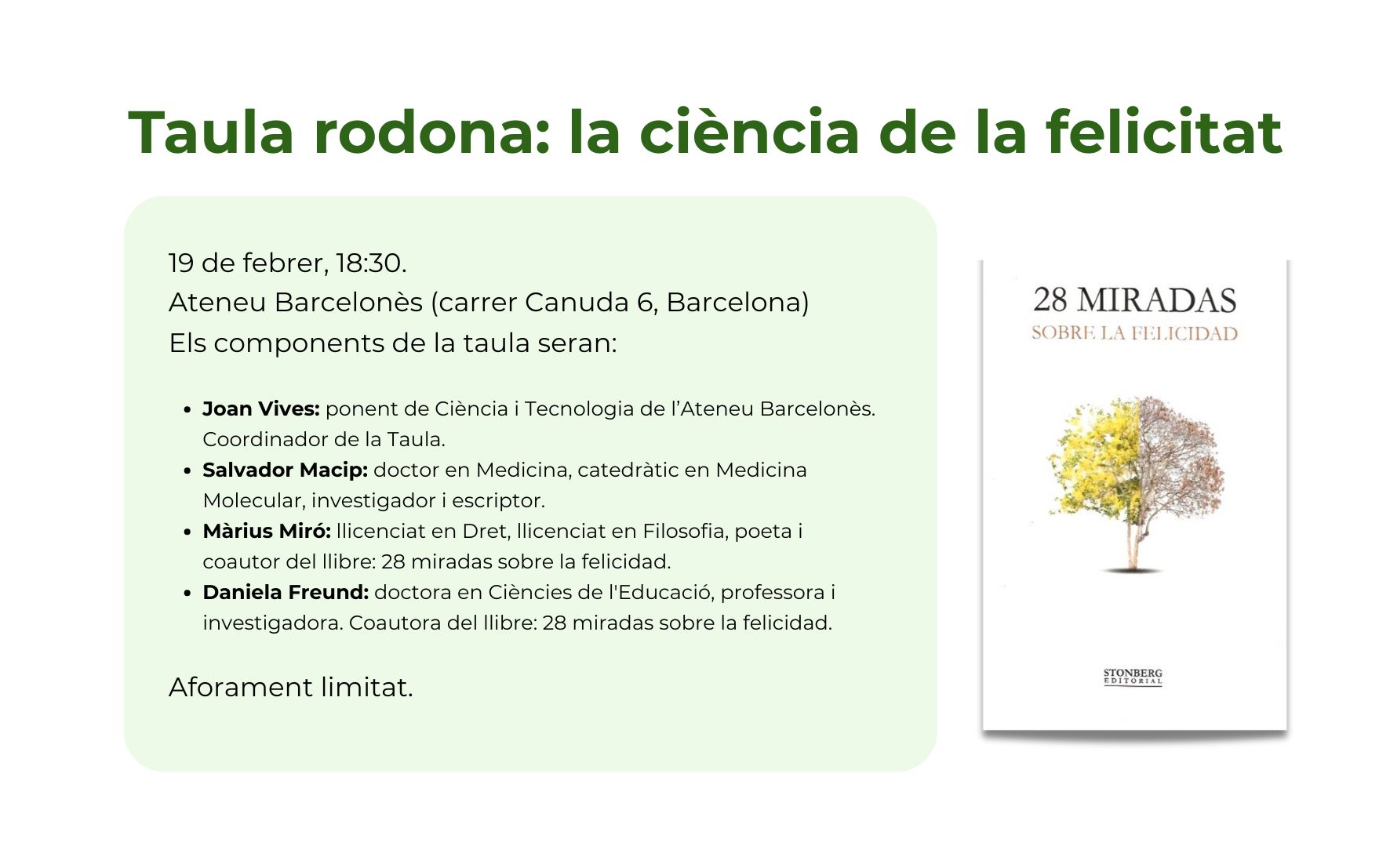 Taula rodona sobre la ciència de la felicitat a l’Ateneu Barcelonès | 19 de febrer