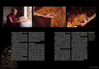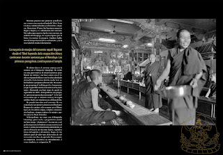Unas monjas sirven el té tibetano, salado, que se mezcla con tsampa (mantequilla rancia) y se acompaña de los chapatis, una especie de tortas que el cocinero preparó la noche anterior. La campanita anuncia el descanso. No hacen falta las palabras. Cada una sabe sus responsabilidades para el día: servir el té, limpiar, hacer la comida, atender la cantina… De momento, siguen leyendo y estudiando. Cuando los primeros rayos de sol entran en el templo ellas permanencen constantes, interiorizando el mensaje del Buda.